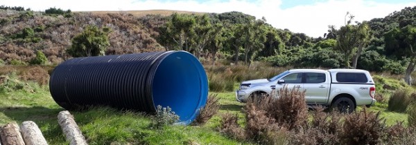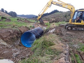 Rural install of a EUROFLO culvert pipe on a farm in New Zealand.