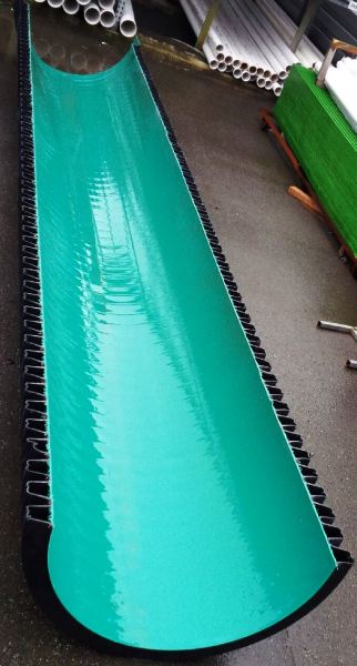 Cut in ½ lengthways, EUROFLO can be used for stock troughs and fluming. Also available is a durable PVC fabric fluming product. Fluming can preserve your embankments by directing discharge from culverts to the desired outlet. The PVC fabric fluming is available to fit 100mm to 900mm pipe.